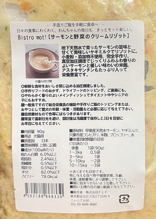 Bistro mot!やわらかFishサーモンと野菜のクリームリゾット こだわりのサーモン使用!
