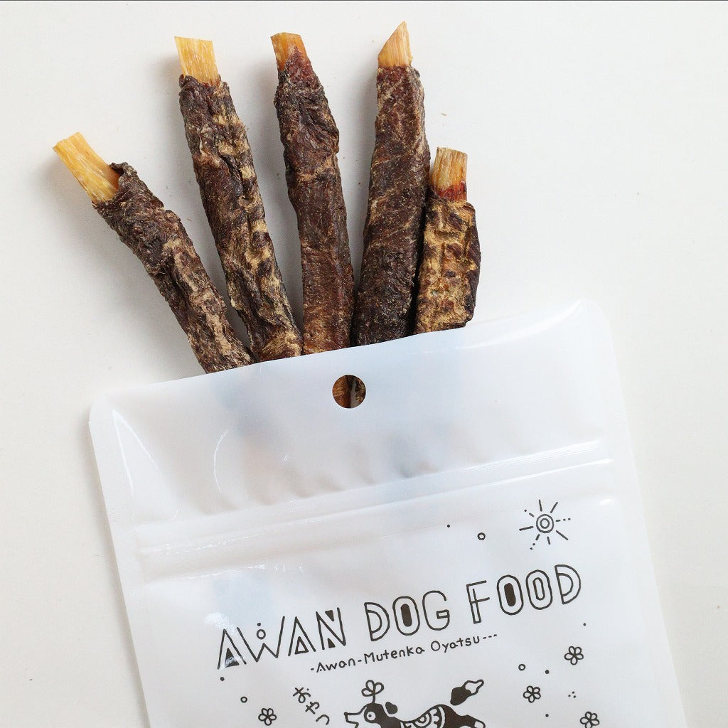 馬の背筋に馬肉を巻いた1度で2度美味しいおやつです!