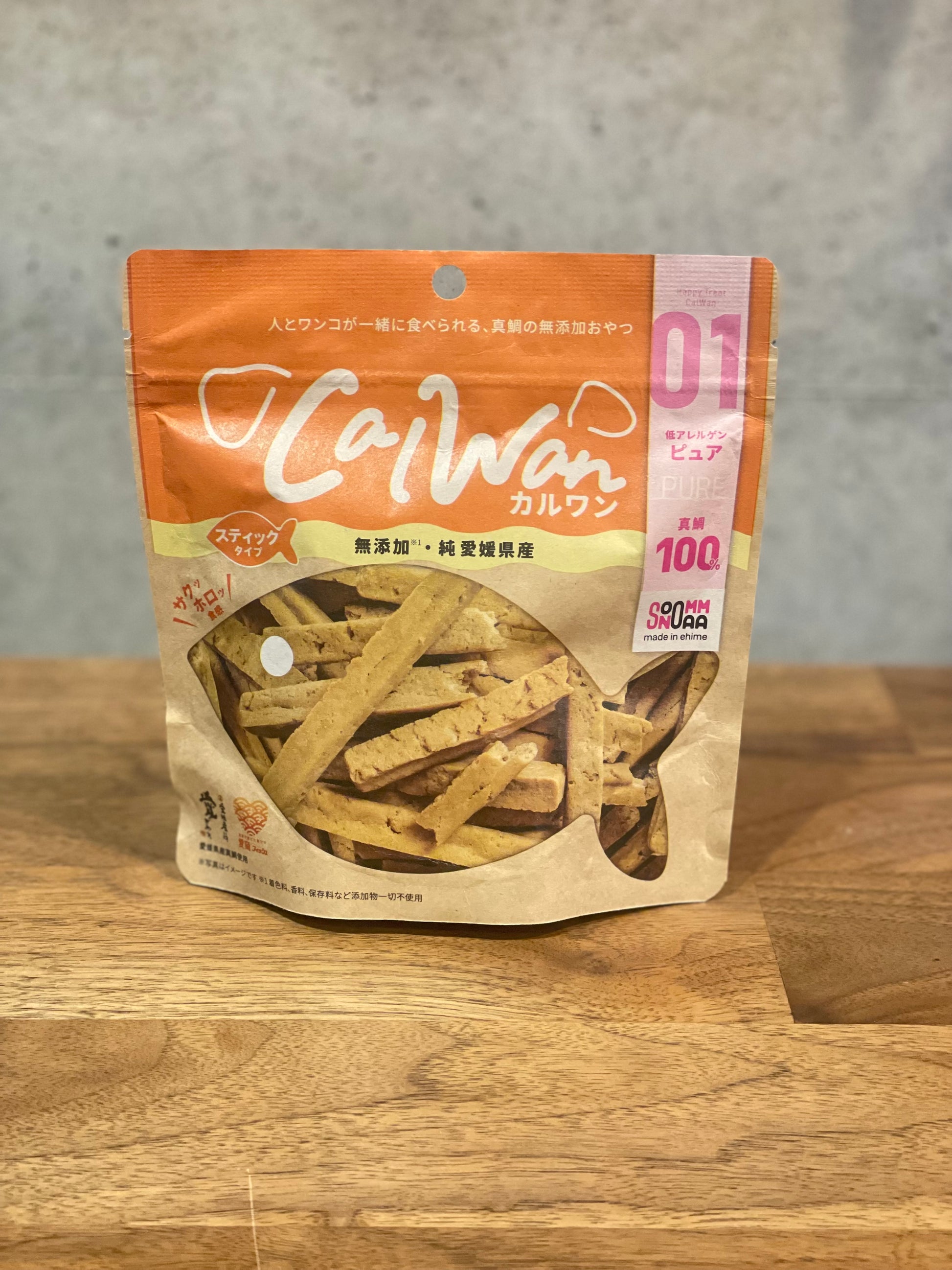 ワンコと飼い主さんが一緒に食べられる、愛媛県産の真鯛100%だけでつくったおやつです!