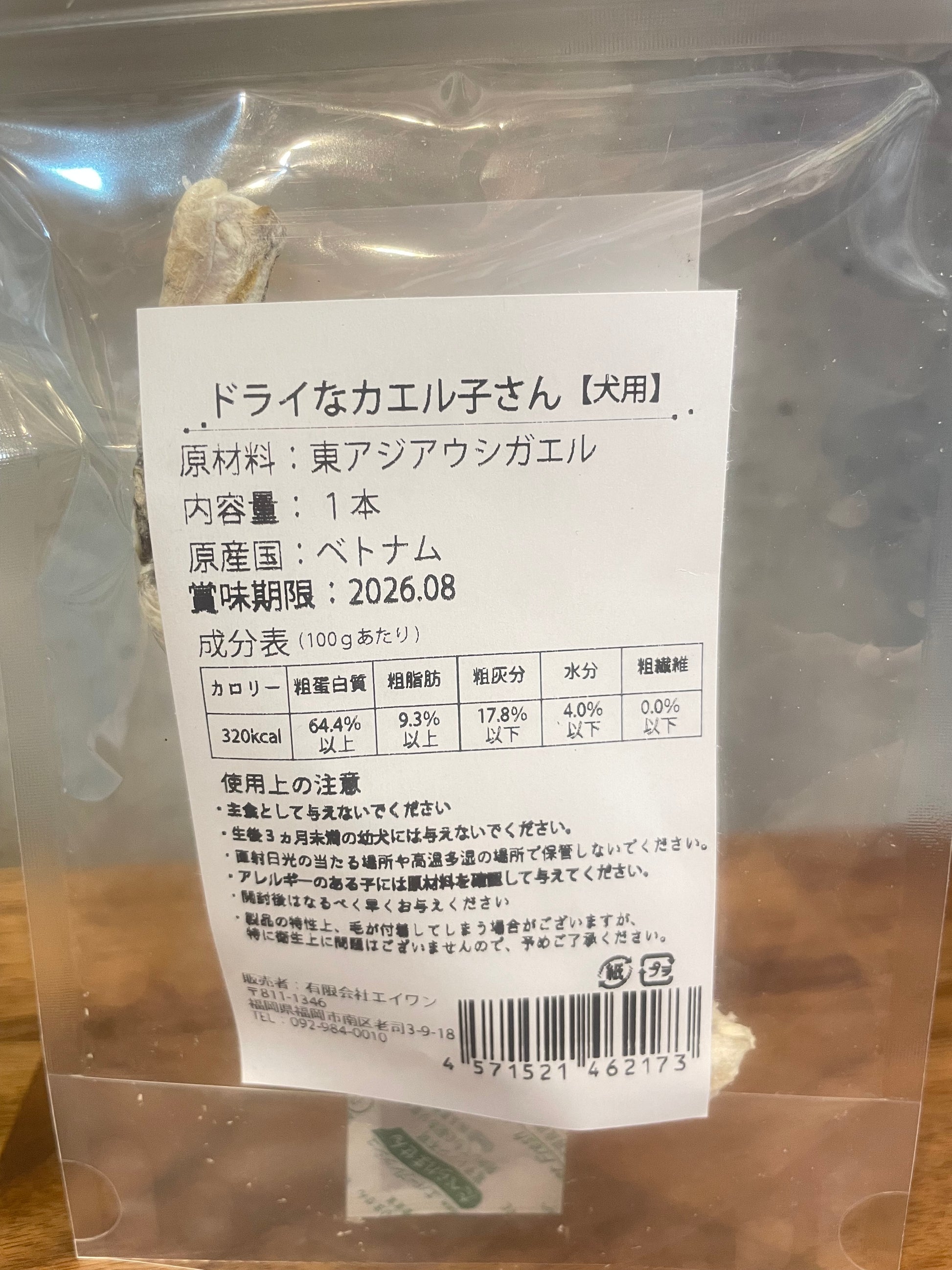 非常に珍しいカエルの脚をフリーズドライにしたおやつです