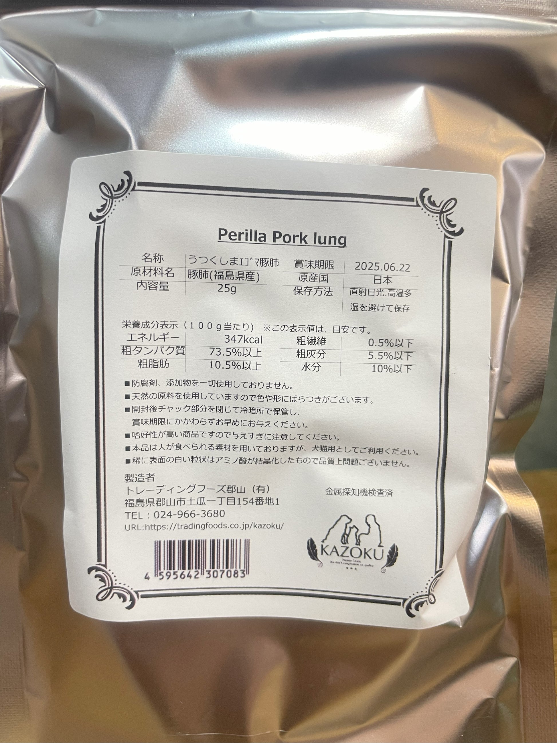 !ハイクオリティジャーキー KAZOKUエゴマ豚肺