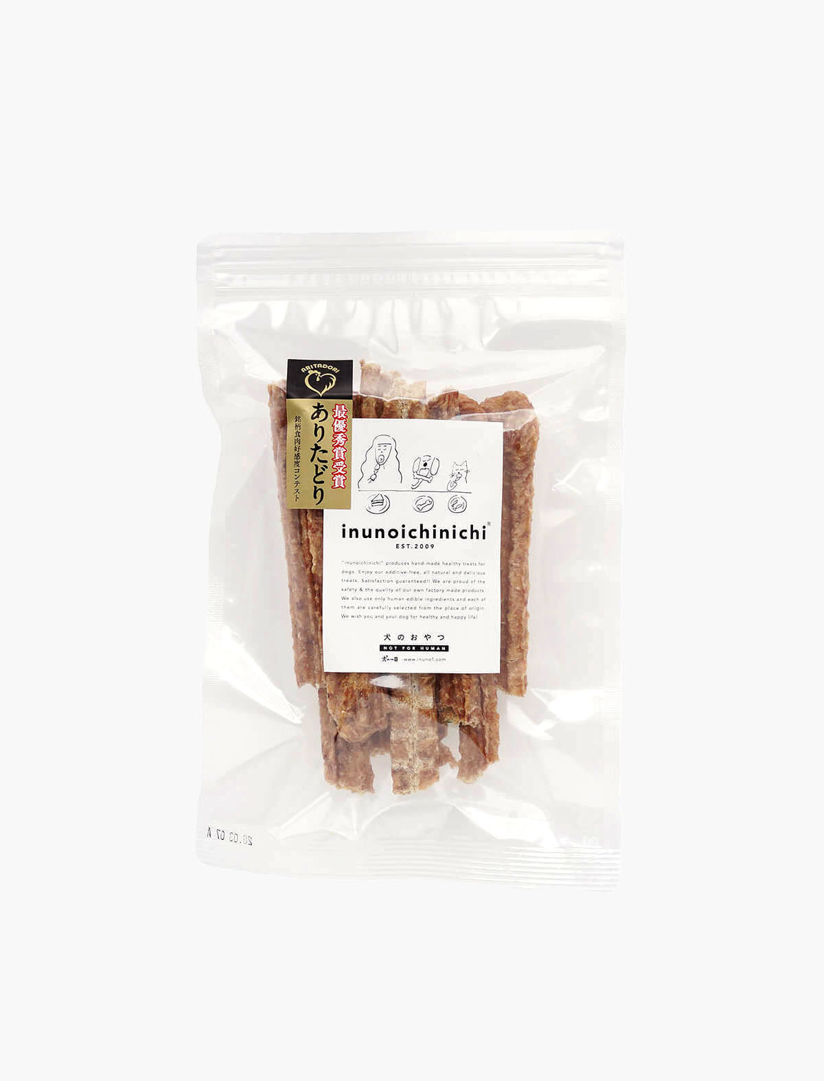 国産の「鶏肉(ありたどり)」と「とさか」のみで作った完全無添加の安心おやつです。「とさか棒」には100g中ヒアルロン酸1,800mgも含有しています。ヒアルロン酸の成分で、たっぷり保湿。皮膚が気になるワンちゃんにおすすめです。カリッカリッと、おかきの様な歯ごたえ。歯のお手入れにもどうぞ。