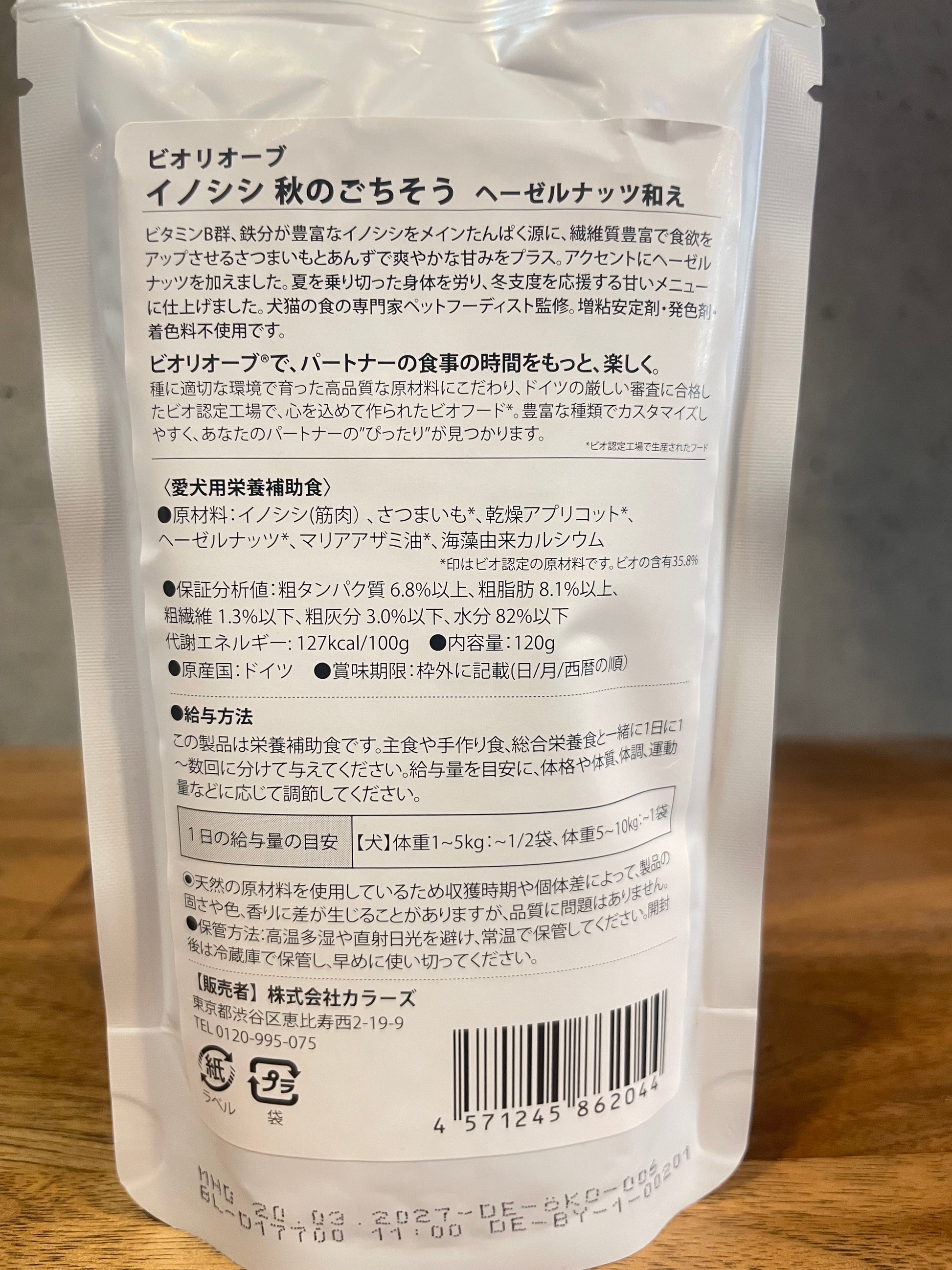 !ビオリオーブ 秋のごちそう ワイルドボア ヘーゼルナッツ添え