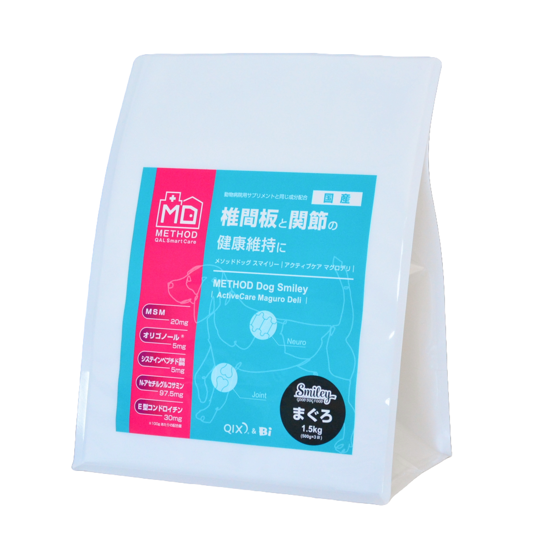 『METHOD Dog Smiley Active Care Maguro deli』は、純国産食材使用、国産マグロ使用、小麦粉・小麦グルテンフリー、