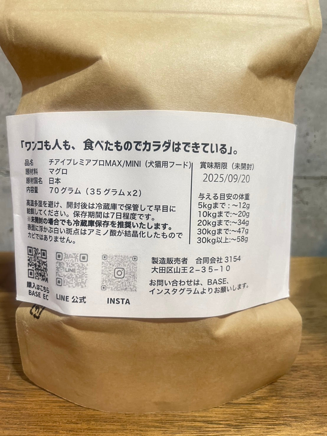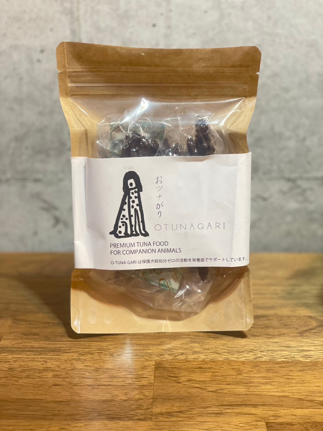 「キングオブ魚肉」と言われる血合80割以上の部位をマグロの出汁で煮た後に、整形、低温長時間乾燥させたプレミアプロの名に恥じぬスペシャルフード。マグロの出汁ももちろん自家製。たっぷりのコラーゲンやカルシウム、ミネラルなどが溶け出した出汁がマグロに染み込み、圧倒的に不足がちな栄養素をしっかり補給できます。