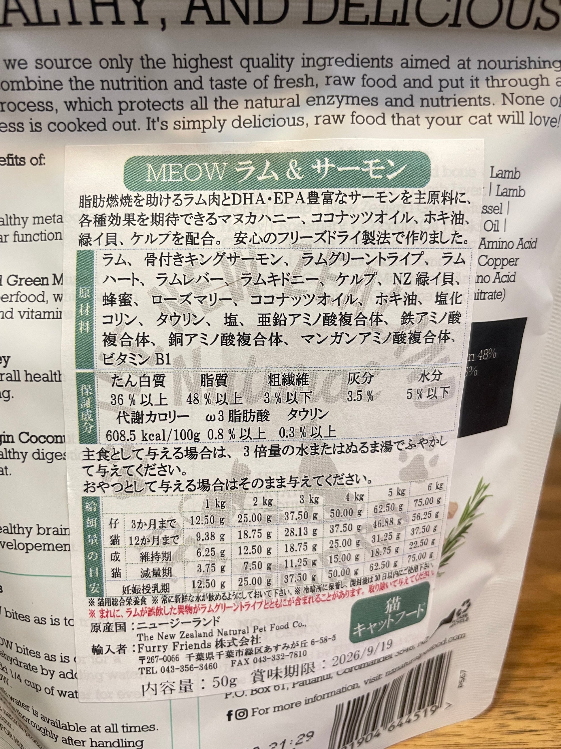 meow ラム&キングサーモン 50g ハイグレードフリーズドライフード