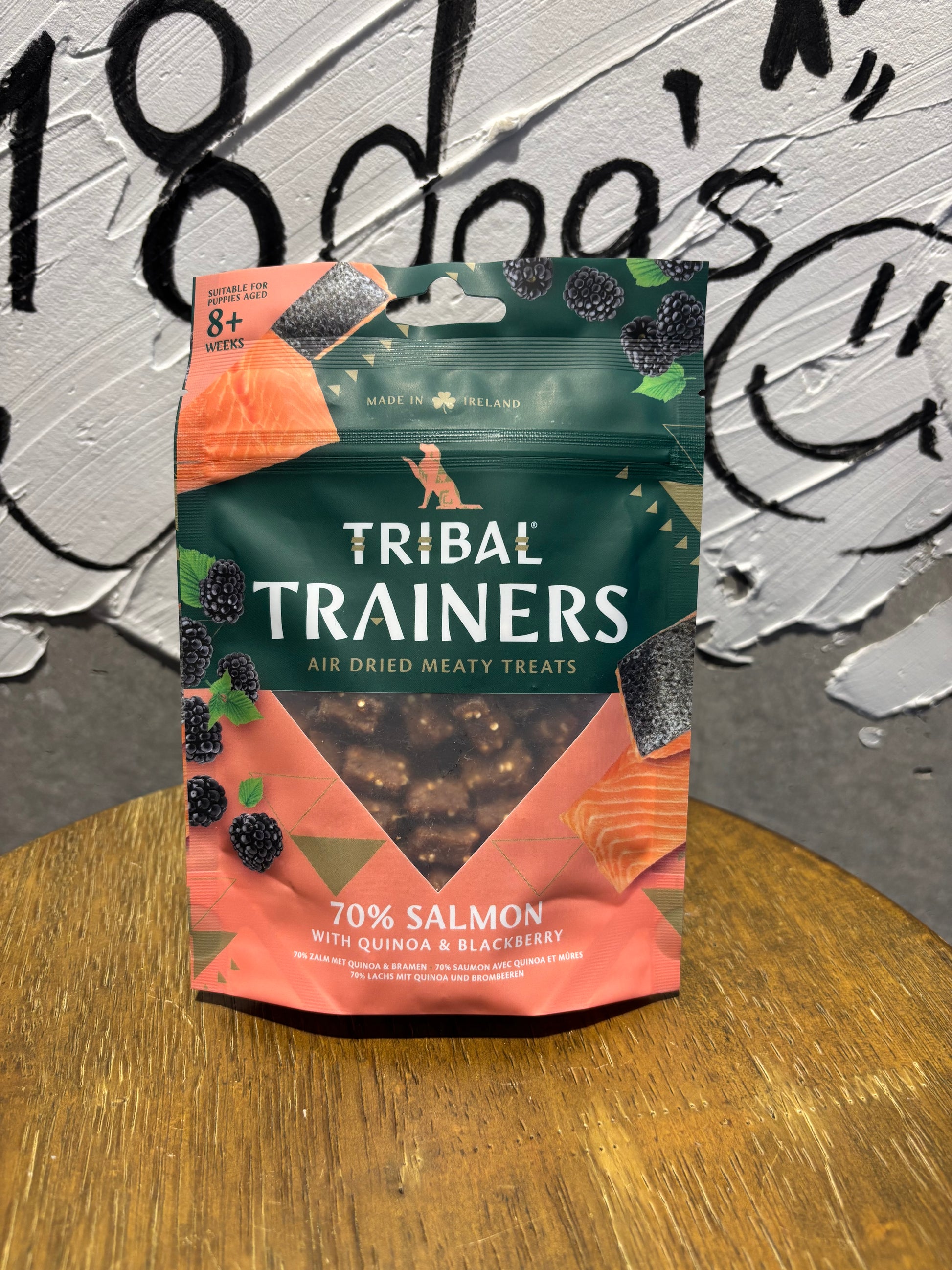 原材料:フレッシュサーモン 70%、ポテト 10.8%、植物性オイルグリセリン 8%、キヌア 4%、ブラックベリー 4%、発酵ホエイ 1.5%、ミネラル類 1.5%、セージ 0.1%、酸化防止剤:植物油由来のトコフェロール抽出物 0.1%