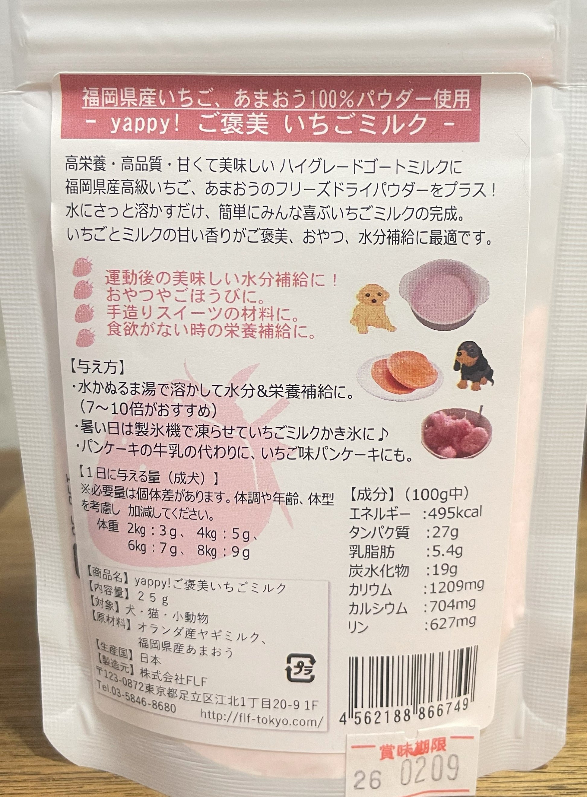 !yappy! ご褒美いちごミルク 福岡県産あまおう100%使用
